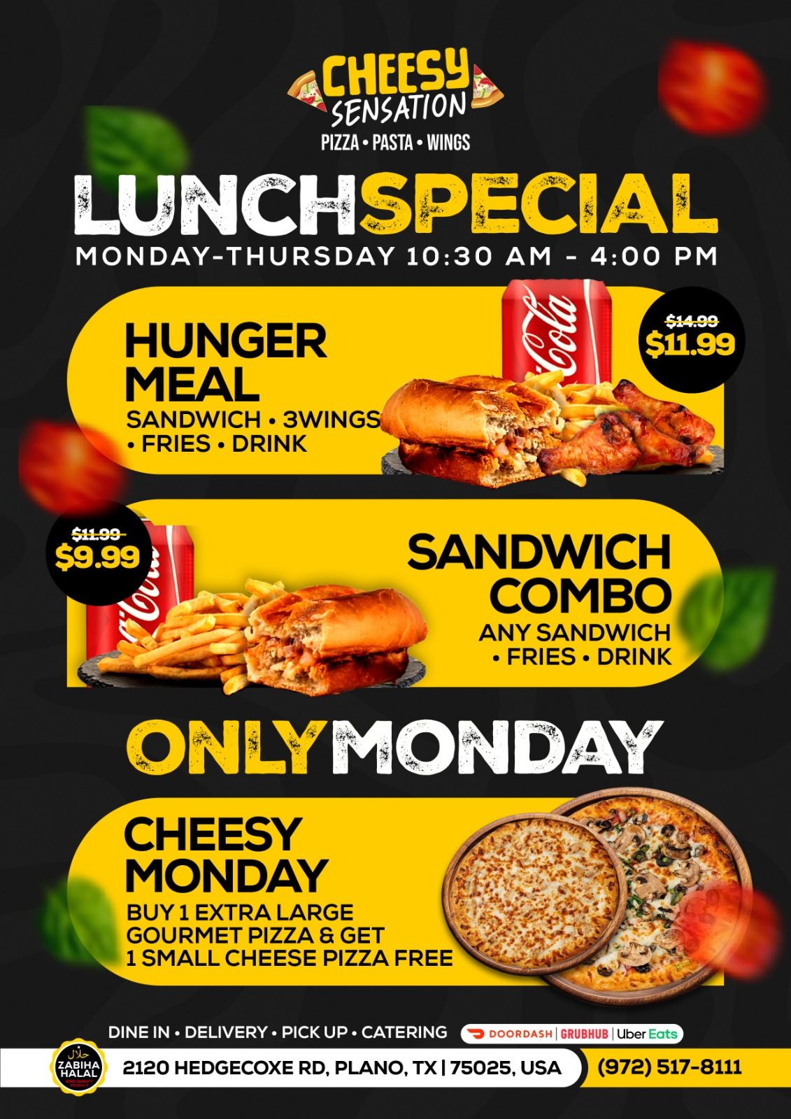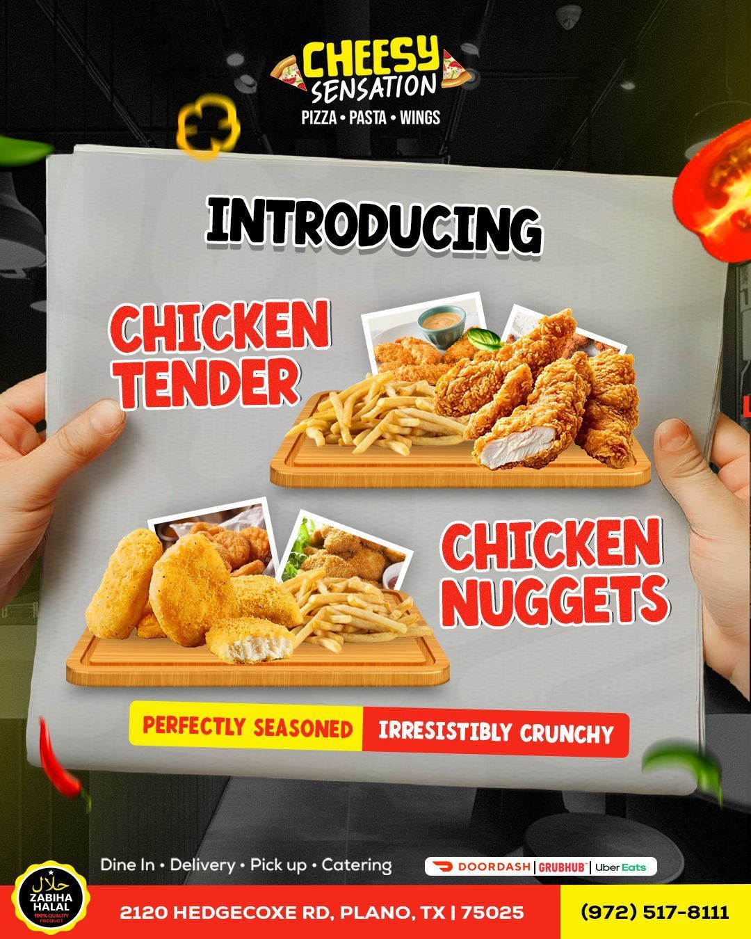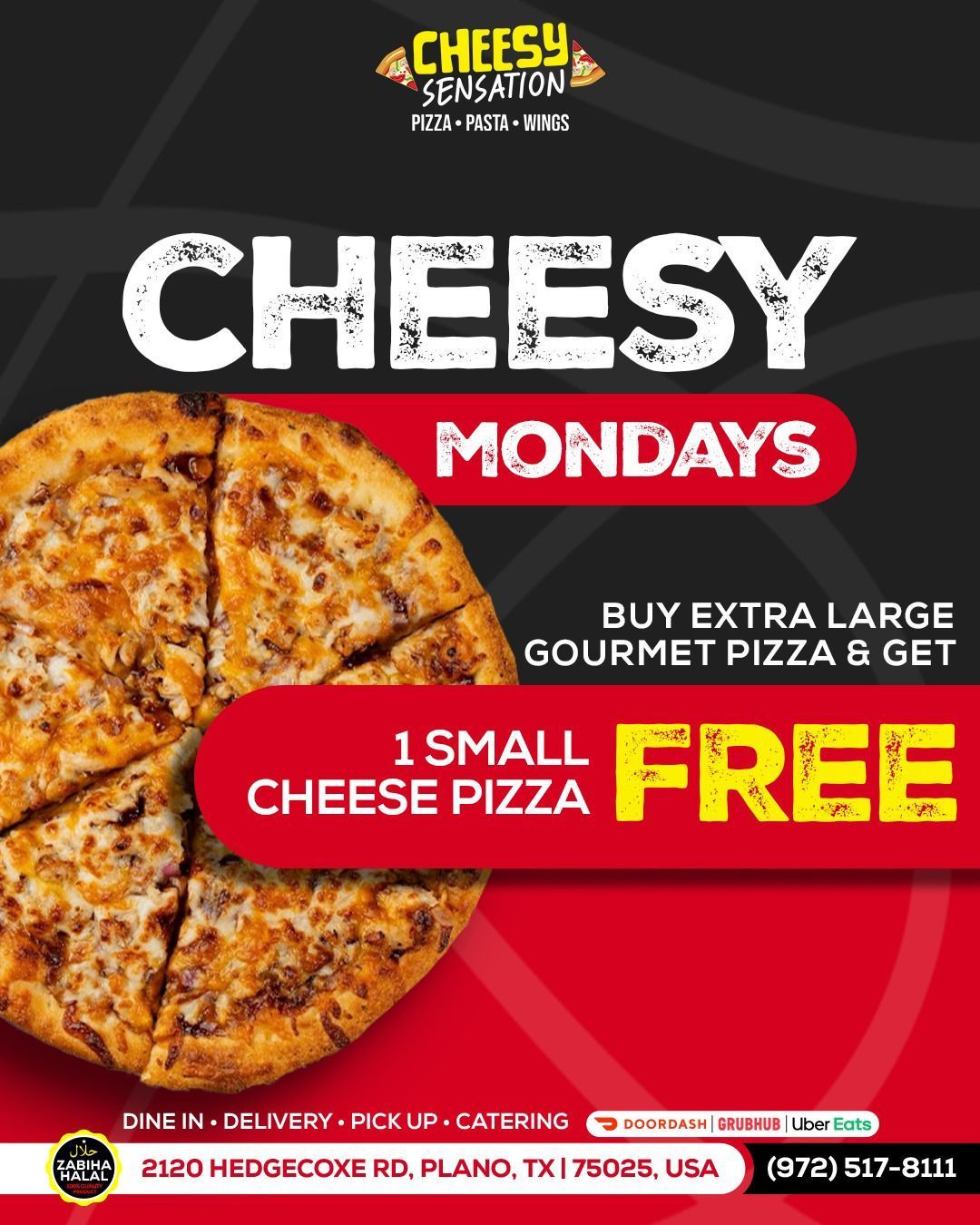 Welcome to Cheesy Sensation, Plano's newest pizza haven! Our skilled chefs artfully blend premium herbs and spices, crafting pizzas and sides that redefine sensational dining. Step into our inviting eatery, where seasoned chefs curate culinary masterpieces, creating a symphony of flavors from hand-tossed crusts to layers of top-quality cheeses.