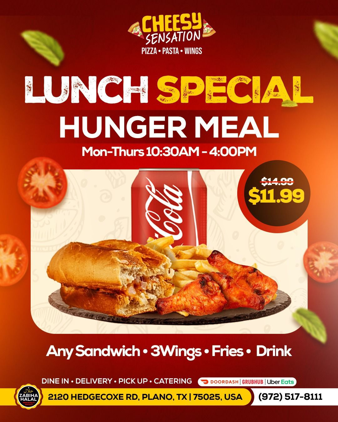 At Cheesy Sensation, it's not just about pizza; it's a full-sensory experience. Explore our diverse menu, featuring savory garlic knots, crispy mozzarella sticks, and loaded fries. Whether you're here for a quick bite or a gathering with friends and family, Cheesy Sensation is your go-to destination for extraordinary pizzas and sides in the heart of Plano, Texas.